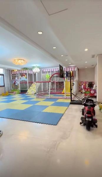 随后他们一起去了孩子游玩的娱乐室,里面建有滑滑梯,还放着篮球等诸多玩具,看起来非常有趣。