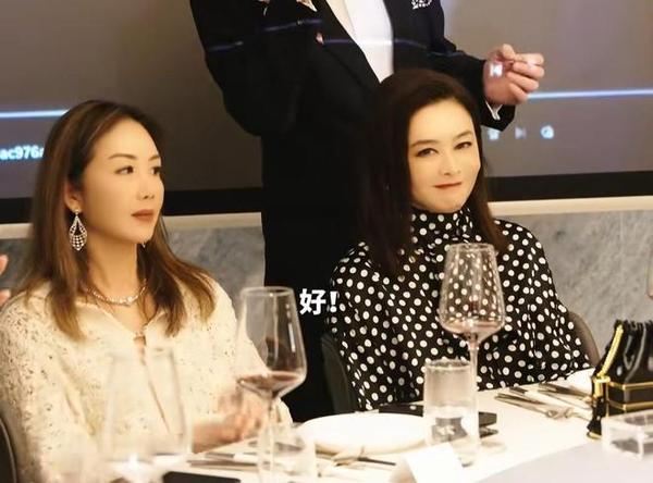 关之琳身穿黑底白色波点的上衣,气质相当出众。61岁的关之琳在同龄人中可以说完胜。