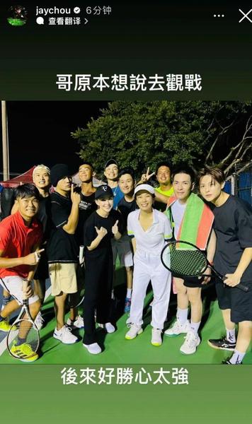 近日,周杰伦在自己的ins账号上晒出了他跟好友一起相聚打网球的大合照。前来一起打网球的人有萧敬腾林有慧夫妇、周兴哲等人。他配文道:“哥原本想去观战,后来好胜心太强。”看样子是跟大家一起打网球,而且打得很不错。