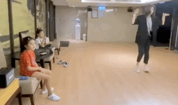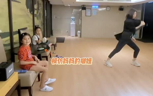 视频的开头便是贾静雯在台湾练舞的视频,当时两个小女儿都在旁边陪着妈妈。