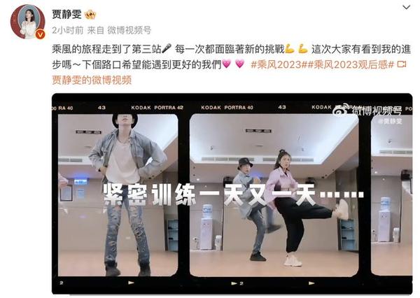 近日,贾静雯分享了自己参加《乘风2023》三公中的花絮视频,就算是没在长沙录节目的时候,也没有落下训练。