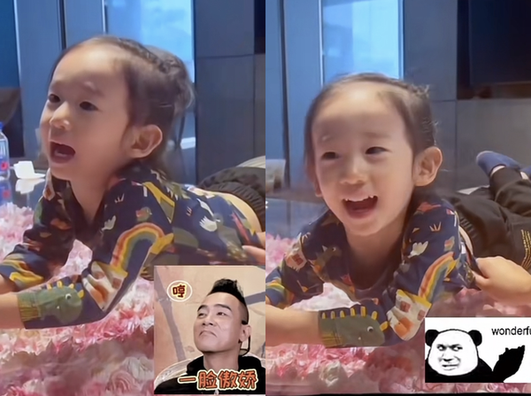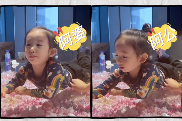 HoHo趴在茶几上,用上海话说了“爸爸”和“妈妈”,小奶音十分治愈,应采儿还给附上了陈小春得意的表情包。随后HoHo又学说“阿婆”和“阿公”,发音也非常标准,家里的老人也跟着答应,让小家伙信心大增。