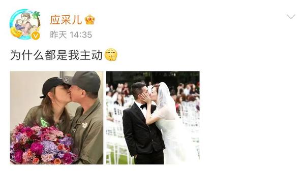 14日,香港知名演员应采儿透过社交平台发文庆祝与老公陈小春结婚13周年纪念日,配文:为什么都是我主动。文案下方,应采儿晒出两张与陈小春亲吻的照片,高调撒糖一时间收获满满祝福。
