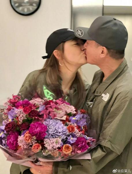 第一张照片应该是应采儿纪念日当天拍摄的,从两人的穿搭来看,符合北京当前的季节。夫妻俩还特意挑选同款墨绿色情侣套装出镜,紧挨彼此热情亲吻,应采儿用力很足,嘴唇都被挤压到翘起来了。陈小春则微闭双眼,脸上露出幸福的表情,享受老婆传递过来炙热的爱。