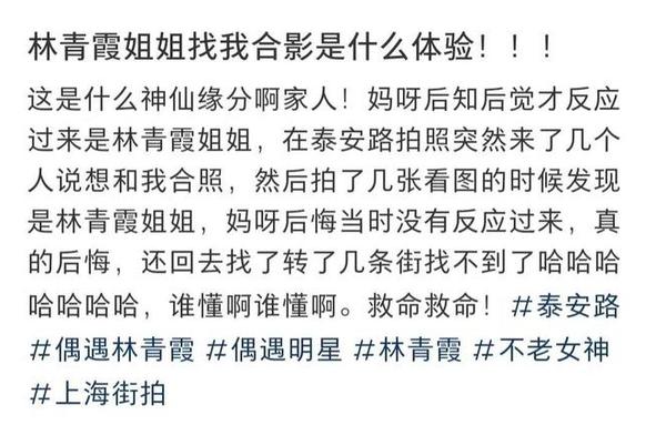 不仅如此,林青霞在街头上看到酷酷的小哥哥时,都十分接地气的上前找人家合影。