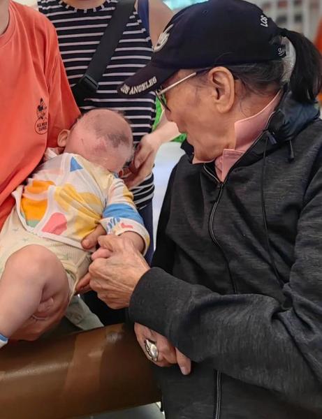 在与网友们合影时,谢贤表现得非常随和,毕竟自己都有几个孙子了,因此见到小孩时就更加喜爱。合照时他还不忘与小宝宝互动,握着他的小手画面就特别有爱。