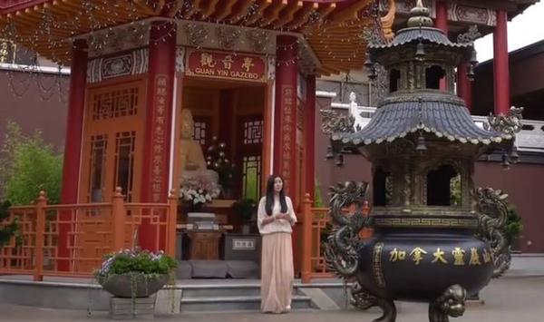 王祖贤手捧着一束白花朝着寺庙里的神像走去,虔诚地将花朵供奉在神像前。随后打开经书,开始在神像面前念经,看起来十分安然,没有世外纷扰的那种烦躁。
