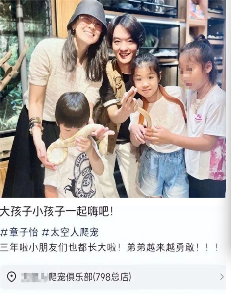 近日,一位爬宠俱乐部老板在社交网络上分享了一则最新的消息,附文写着:“让大人小孩们一起欢乐吧”,并标注了“章子怡”等话题标签,引起了公众的热议。