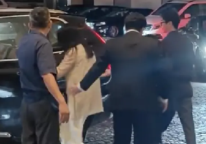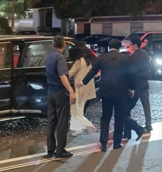 要上车前,霍启刚一只手扶着郭晶晶的背,一只手伸向打开的车门,互动郭晶晶上车。这个细节显得霍启刚好贴心,很有教养,也彰显出了他对妻子、对女性的尊重。这车锃亮锃亮的,一看便知价值不低。