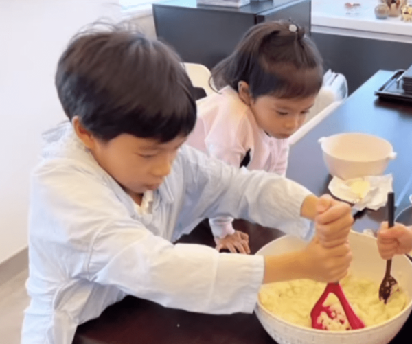 6月19日父亲节,霍启刚分享了儿女们为自己做大餐,画面超级可爱!照片中霍启刚小女儿正脸首曝光,兄妹一起动手为爸爸做大餐,认真的样子超可爱。