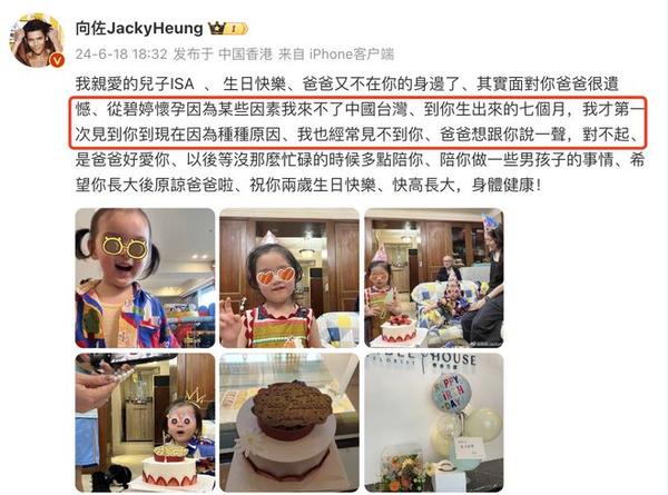 18日,向佐分享了儿子的2岁生日照,除了祝福宝贝生日快乐、快高长大、身体健康之外,他还向儿子道歉。