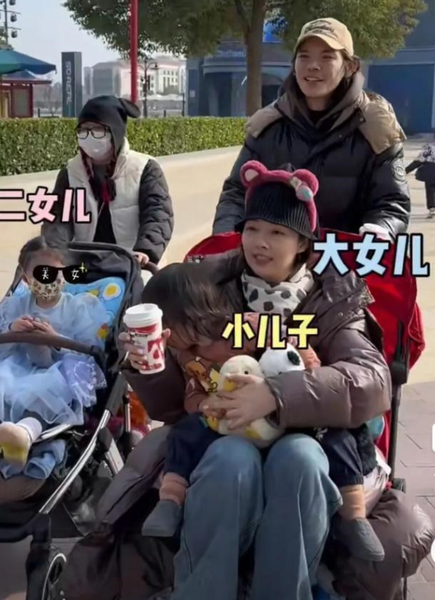 一会儿2个娃出现在镜头中,郭碧婷怀里抱着小儿子,仍旧是向佐推着她们,另外助理推着郭碧婷向佐的大女儿。