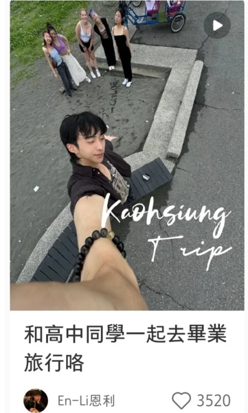 近日,恩利又更新动态,原来回台湾后的那几天,他和高中同学一起去来了一场毕业旅行,而旅行的地点是家附近的高雄。