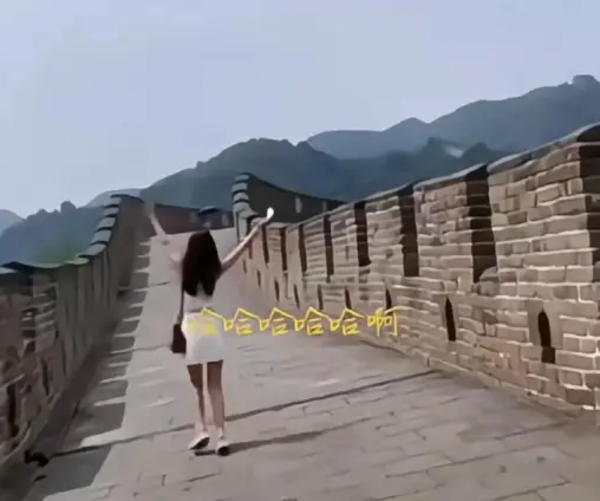 虽然当天太阳很大,但是马筱梅一点不矫情,背心短裙短裤,连个雨伞都没带,整个人晒的红红的,可她却丝毫不在乎,一个人在长城上来回奔跑,看来,她也是很喜欢这个地方啊。