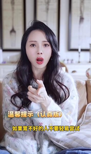 视频中,伊能静也强调如果胃不好的人不要轻易尝试,“毕竟我们还是因为工作的的关系,很快速的去呈现良好的状态。”