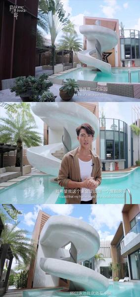 吴尊称泳池在家里的中心位置,因为他希望从各个房间往外看,都能看到泳池。泳池上还有巨型滑滑梯,十分奢华。