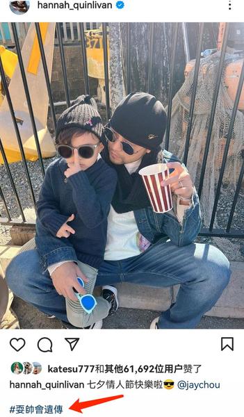 昆凌也晒出了自己的大小情人,罗密欧一根手指扶着自己的墨镜,昆凌调侃称:耍帅会遗传。