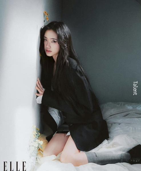 许韶恩黑色西装搭配灰色长袜,皮肤白皙性感迷人。