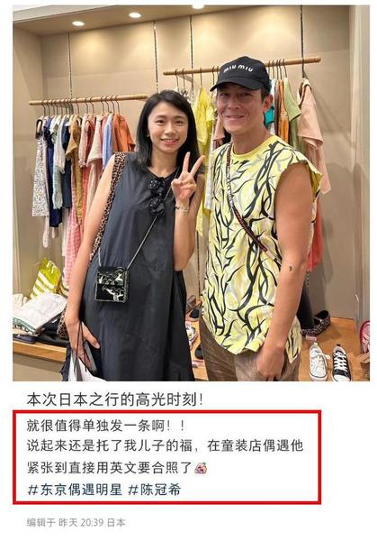 近日,有网友在日本某童装潮牌店偶遇了陈冠希,直言是自己日本之旅的高光时刻。合影中,女粉丝笑对镜头比V,陈冠希站得笔直,笑容十分亲和,一改当年的桀骜不驯。