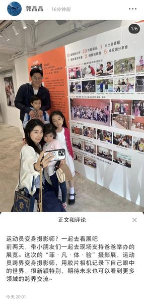近日,郭晶晶分享了一家五口同框照,三个子女全部都正脸出镜。郭晶晶说前几天带着孩子们去现场支持爸爸举办的展览,主题是运动员跨界变身摄影师,用胶片相机记录下自己眼中的世界,非常新颖,期待更多跨界交流。所以郭晶晶这是带着孩子们来支持霍启刚的事业,为他做宣传呢。