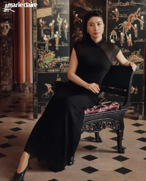 深色绣花旗袍还原咱们的古典美,本来郭晶晶的脸部轮廓就比较鲜明,配合着简约的耳坠搭配旗袍,尽显古典优雅。