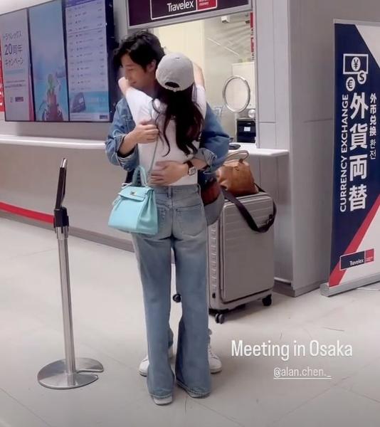 4日,陈乔恩分享了和Alan的恩爱视频,她附上文字“Meeting in Osaka”,透露自己在日本大阪,和老公在机场相遇。陈乔恩有助理陪伴,大概是和老公有段时间没见面了,看到Alan后,立马就飞奔入怀。