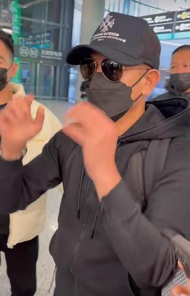 郭富城刚走到大厅,粉丝们就迫不及待地高喊“Aaron”,郭富城见状伸手致意,并接下鲜花和特产。