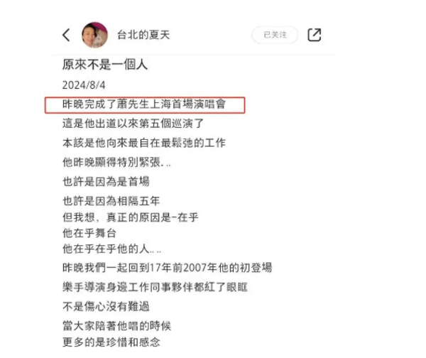 近日,萧敬腾爱妻林有慧在个人社交平台发长文畅谈老公萧敬腾上海首场演唱会的历程。林有慧不仅是萧敬腾的老婆,还是他的经纪人,因此在工作上面自然是更加能体会到老萧的不易与辛苦。看到这次演唱会的成功,林有慧也替老公萧敬腾感到无比开心。