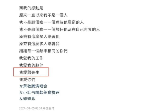 这次发文,林有慧还替萧敬腾感谢了很多人,并表示爱自己的工作、爱自己的伙伴,最后一句“我爱萧先生”简直甜到爆炸啊。从官宣求婚成功到领证结婚,几乎都是老萧在高调秀恩爱,此次林有慧难得发文高调表白老公,确确实实让大家吃足了狗粮,甜翻众人。