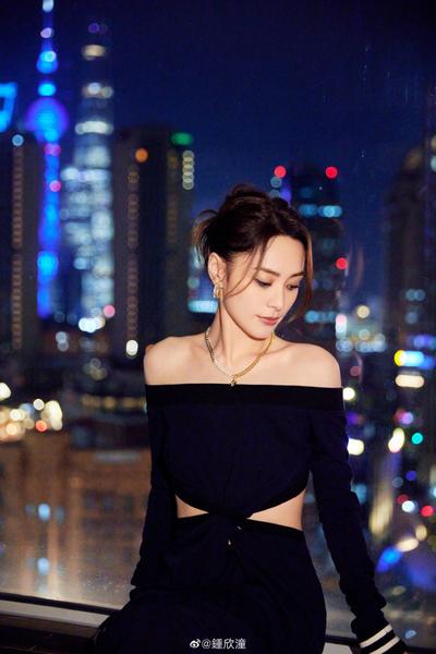 阿娇身着黑色抹胸与黑色阔腿裤 高级千金感满满