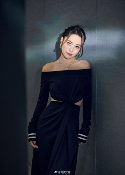 阿娇身着黑色抹胸与黑色阔腿裤 高级千金感满满