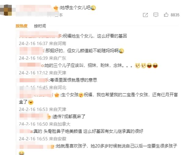 不少网友也评论表示,希望张柏芝能生个女儿,遗传她的美貌!
