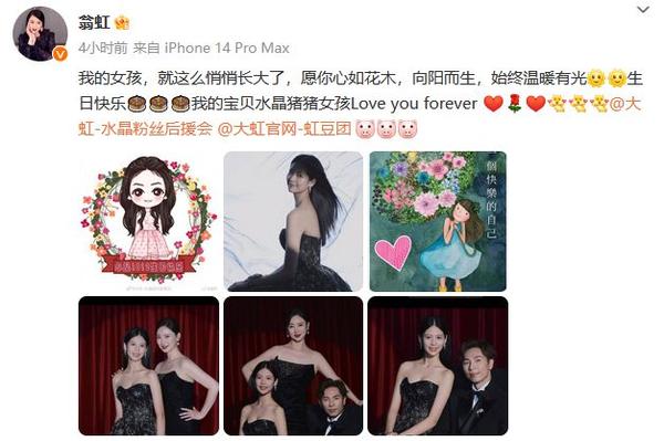 近日,翁虹在自己的个人社交账号上晒出了他们一家三口的全家福,并配文道:“我的女孩,就这么悄悄长大了,愿你心如花木,向阳而生,始终温暖有光,生日快乐,我的宝贝水晶猪猪女孩,love you forever。”