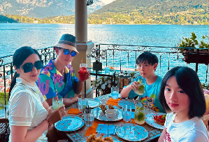 近日,吴尊在个人社交账号晒出了全家现身意大利科莫湖游玩的照片。