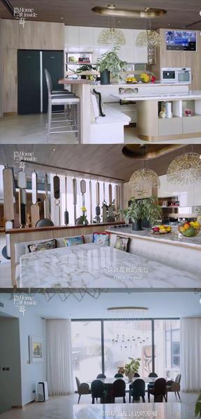 吴尊的家是开放式的,客厅厨房都没有太多的门将其隔开,还有吧台。