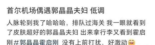 近日,郭晶晶霍启刚夫妇俩合体现身韩国机场,两人的穿搭和状态引发网友热议。
