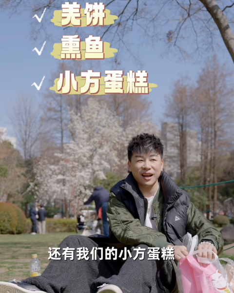 偶遇胡彦斌在上海一公园野餐