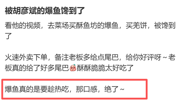 还有网友立马去打卡同款“胡彦斌三件套”,反馈“熏鱼趁热吃夯爆了”!