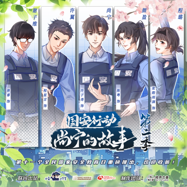 广播剧《国安行动·尚宁的故事》第二季于4月9日起在百视通、云听、喜马拉雅、咪咕阅读、QQ音乐、酷狗音乐、酷我音乐、懒人听书、蜻蜓FM、阅文、番茄畅听、兔U等多家音视频平台每日更新。
