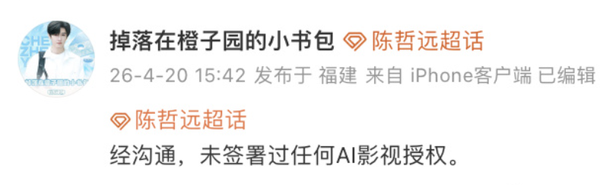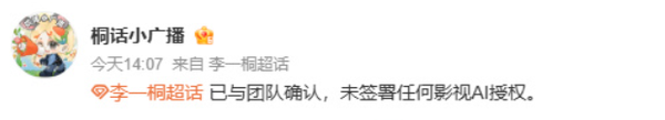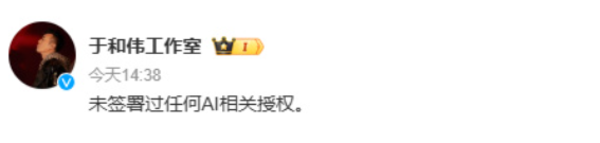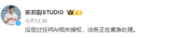 目前,已有多位艺人辟谣签约AI授权,张若昀、李一桐、于和伟、王楚然、陈哲远等艺人及工作室火速辟谣“未签过任何AI授权”。