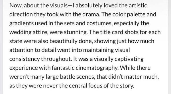 外国网友在评分网站上对《折腰》中式美学的赞赏 图片来源:@dawn@mydramalist.com
