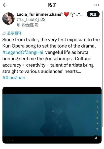 外国网友在《藏海传》中认识非遗昆曲 图片来源:@Lu_liebtZ_523@X