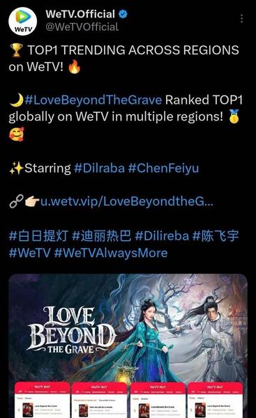 《白日提灯》则在中式奇幻赛道交出了答卷。这部古装奇幻剧于3月28日上线,讲述了400岁的“鬼王”贺思慕与少年将军段胥的爱情故事。在WeTV和Disney+平台上线后,该剧收看人群覆盖全球115个国家和地区,在新加坡、韩国、日本、越南、美国等9个国家和地区的WeTv平台同步登顶热度榜。