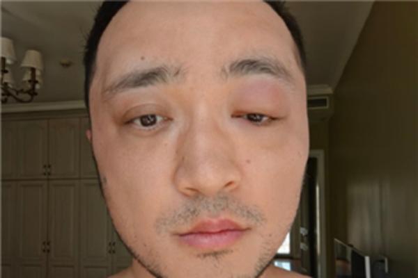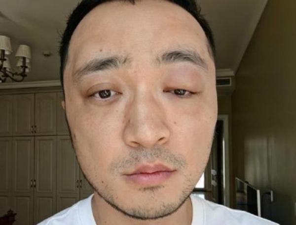 尼格买提晒眼部肿胀的照片并配文:别染发!