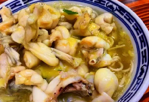 牛蛙面的量惊人,大块鲜嫩牛蛙肉满满铺了一层,面条有嚼劲,汤底是胡椒猪排汤,甜中带鲜,忍不住喝个碗见底。