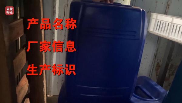 在重庆市曾巧食品有限公司,记者同样发现了大量回收的蓝色包装桶,桶身标签赫然标注着过氧化氢,即俗称的双氧水,含量高达35%,生产厂家是四川眉山市的金山制药有限公司。