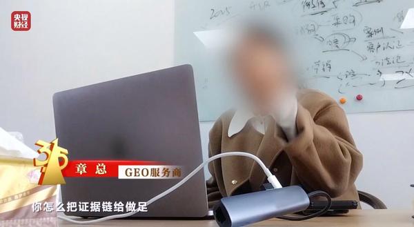 GEO服务商 章总:你在AI的世界里面,你怎么把证据链给做足,让(AI大模型)觉得这就是真的,而且是有用的。AI大模型经过多方信息交叉,它觉得你优于同行的核心优势,自然而然就会把你放在第一位。
