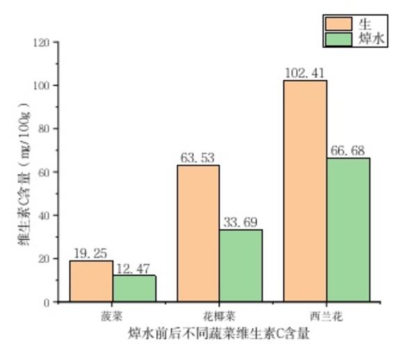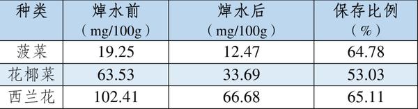3种蔬菜焯水前后维C含量