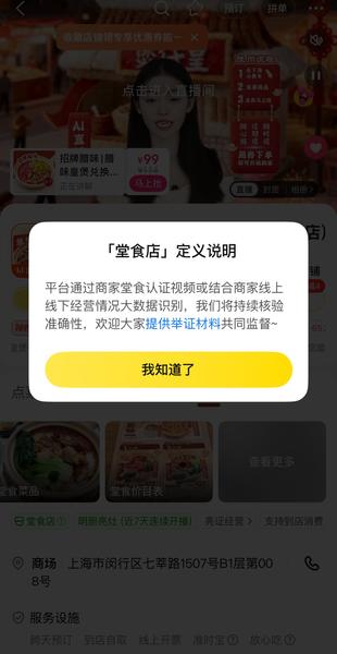 点击“堂食店”标识 可以看到相关说明