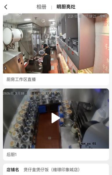部分商家已开通“明厨亮灶”通道,消费者可实时观看后厨情况